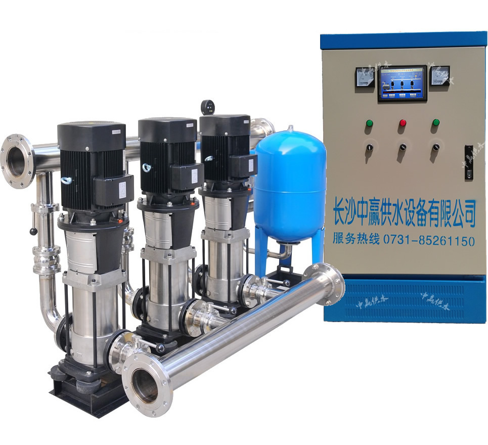 長沙中贏工業生活變頻給水設備是將交流變頻調速技術、可編程控制技術應用于水泵自動控制設備之中,與電機泵組相結合的