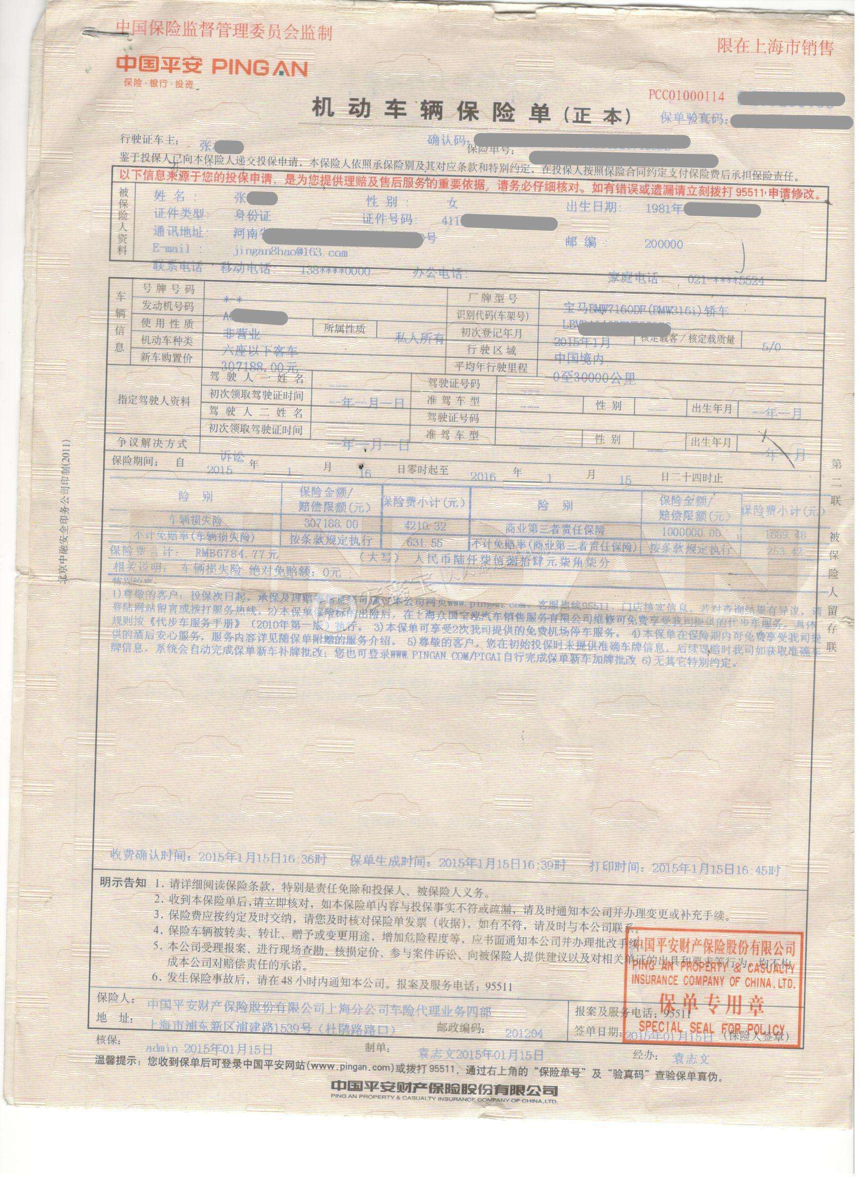 8、打電話到保險公司,把保險單上的發動機號與車架號進行核對,如果是新車是沒有保險記錄的。